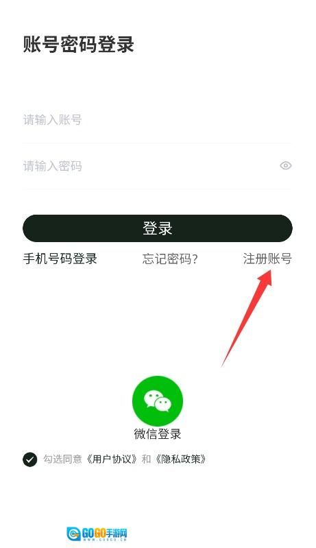 2、在登录页面的右下角找到注册账号选项,点击该选项后,即可进入新用户注册信息的填写界面。