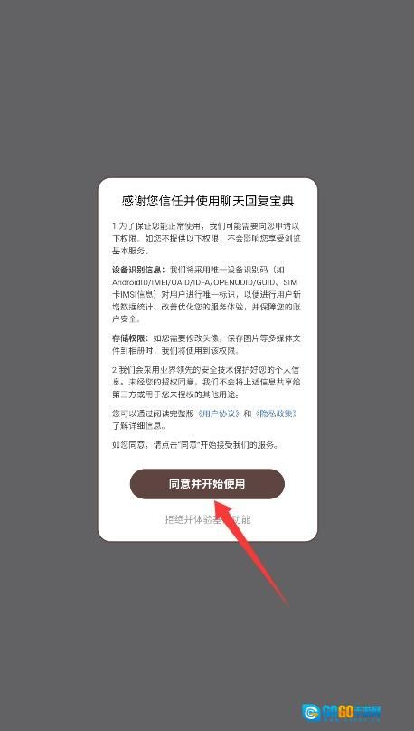 1、初次使用需完整阅读平台服务条款与隐私政策,确认后点击同意并开始使用。