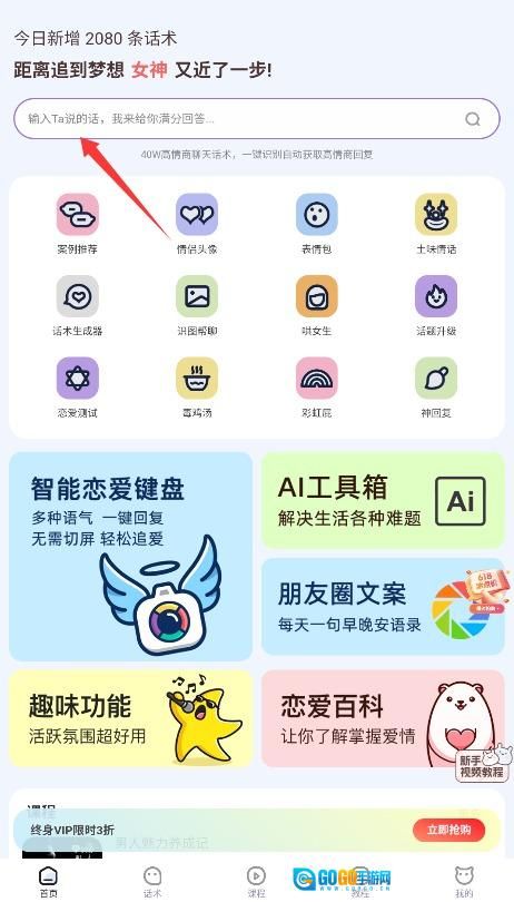 3、在首页搜索框输入对话内容,系统将智能生成合适的回复建议供您选择。