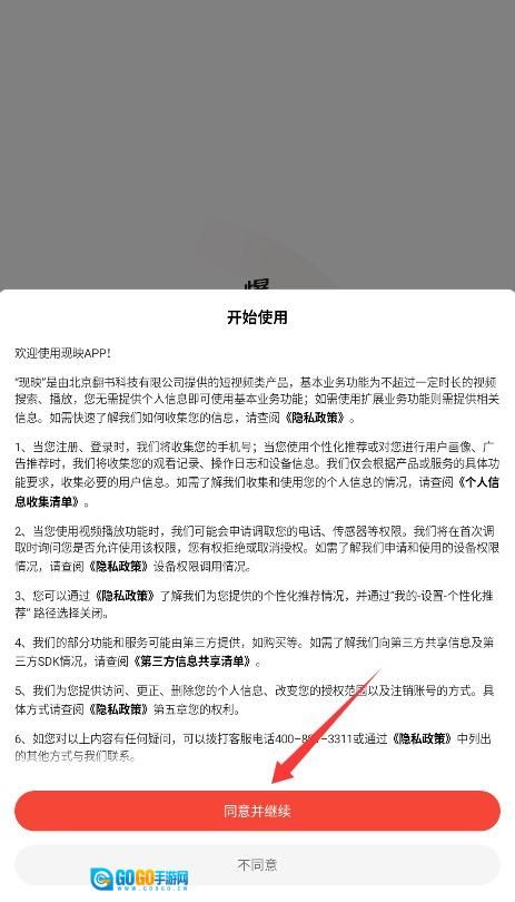 1、初次使用需完整阅读平台服务条款与隐私政策,确认后点击同意并继续进入应用。