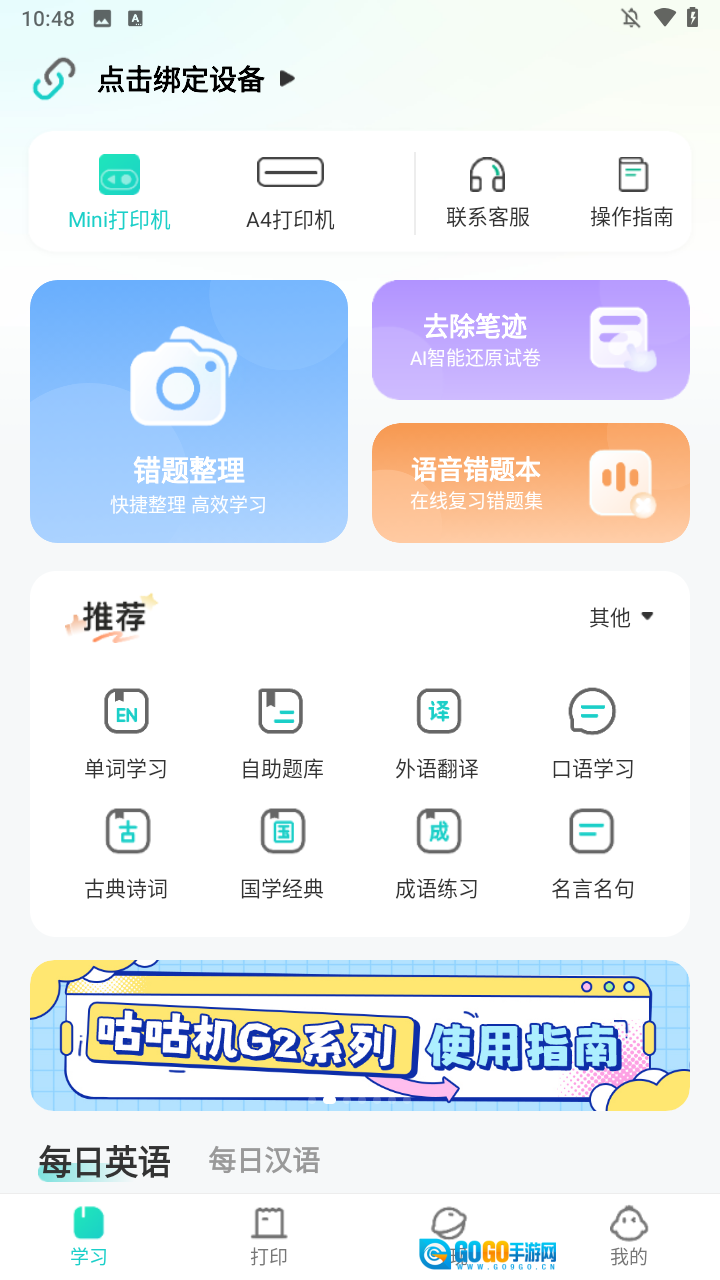 2、学习好帮手:能拍照识别错题、打印重点知识和公式,搭配丰富题库,辅助日常复习和巩固知识点。