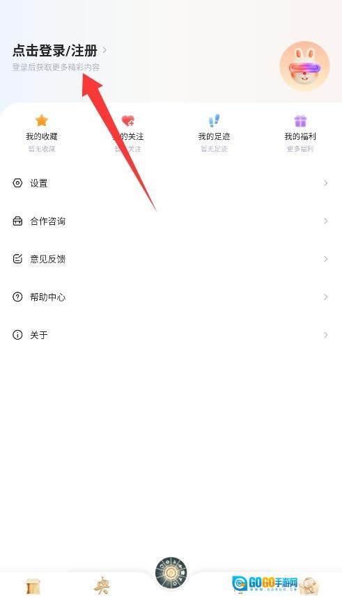 2、进入个人中心页面后,点击左上角的登录/注册按钮,页面会跳转至账号认证界面,你可在此进行相关操作。