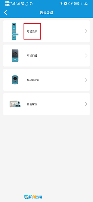 2、在设备列表中选择要添加的品类,例如可视云锁;
