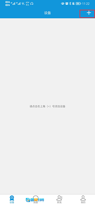 1、打开安装好的叮叮智能门锁,在设备首页点击右上角+号添加设备;
