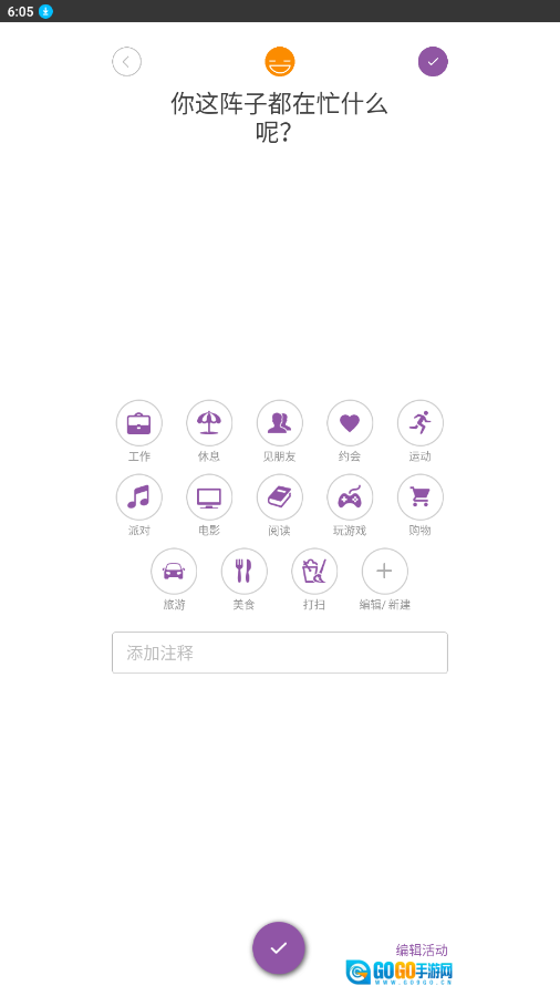2、选定心情后,既可以添加活动编辑,也能够自行创建新的活动标签。
