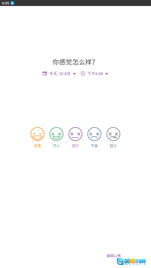 1、进入软件后,Daylio会先引导用户选择当天的心情。