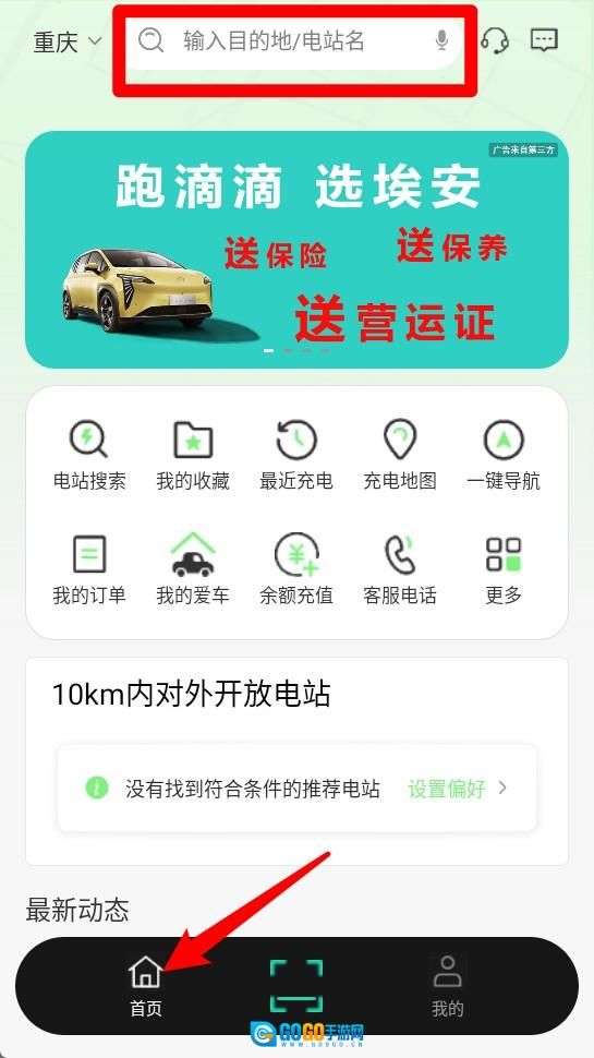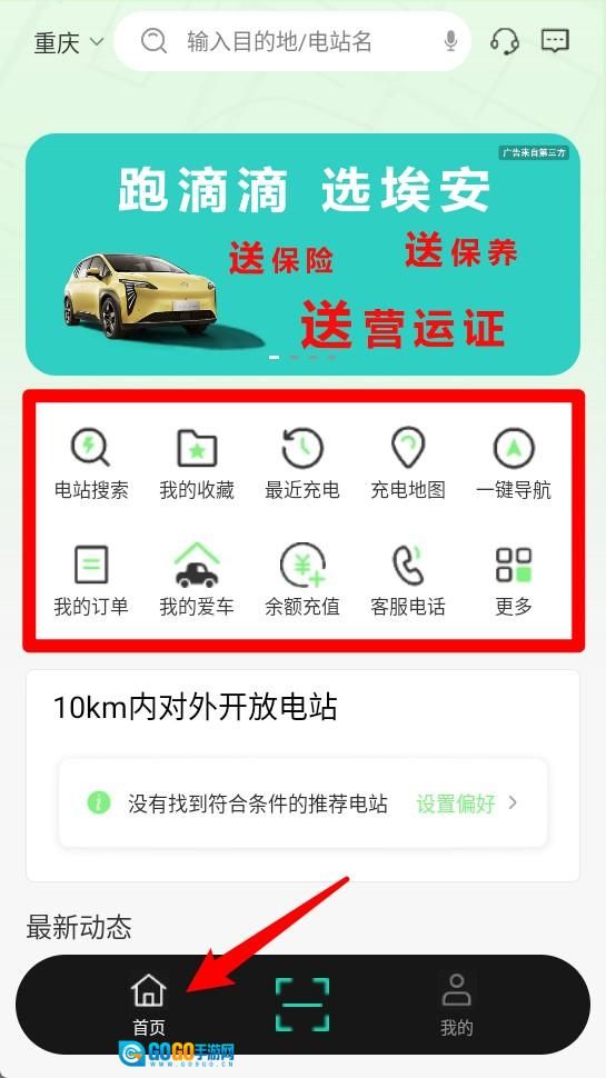 2、点击首页功能区,即可进入电站搜索、我的收藏、最近充电等实用快捷功能入口。