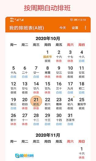 4、可随时随地查看:数据存储在本地或云端,只要手机在身边,就能随时查阅未来或历史的排班情况,不受地点约束。