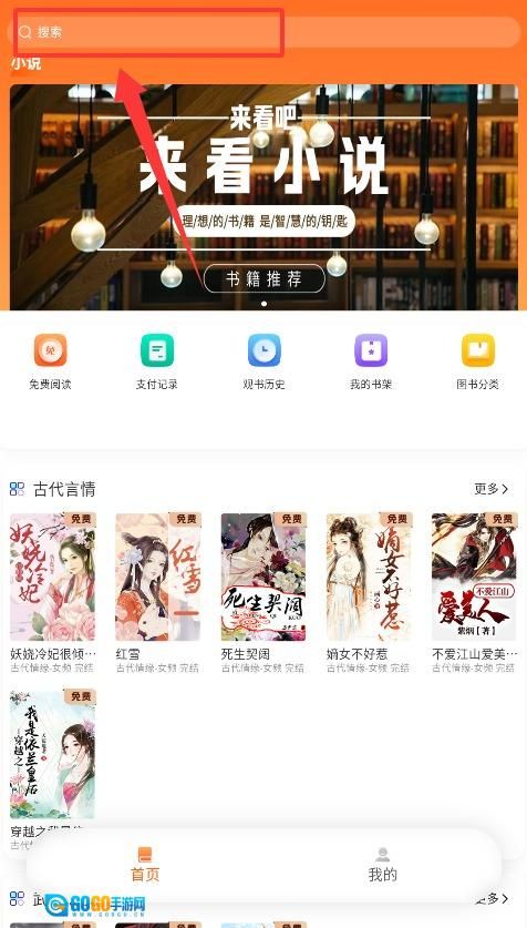 3、进入主页面后,通过顶部的检索栏输入作品名称,就能快速找到并阅读想要的小说内容。