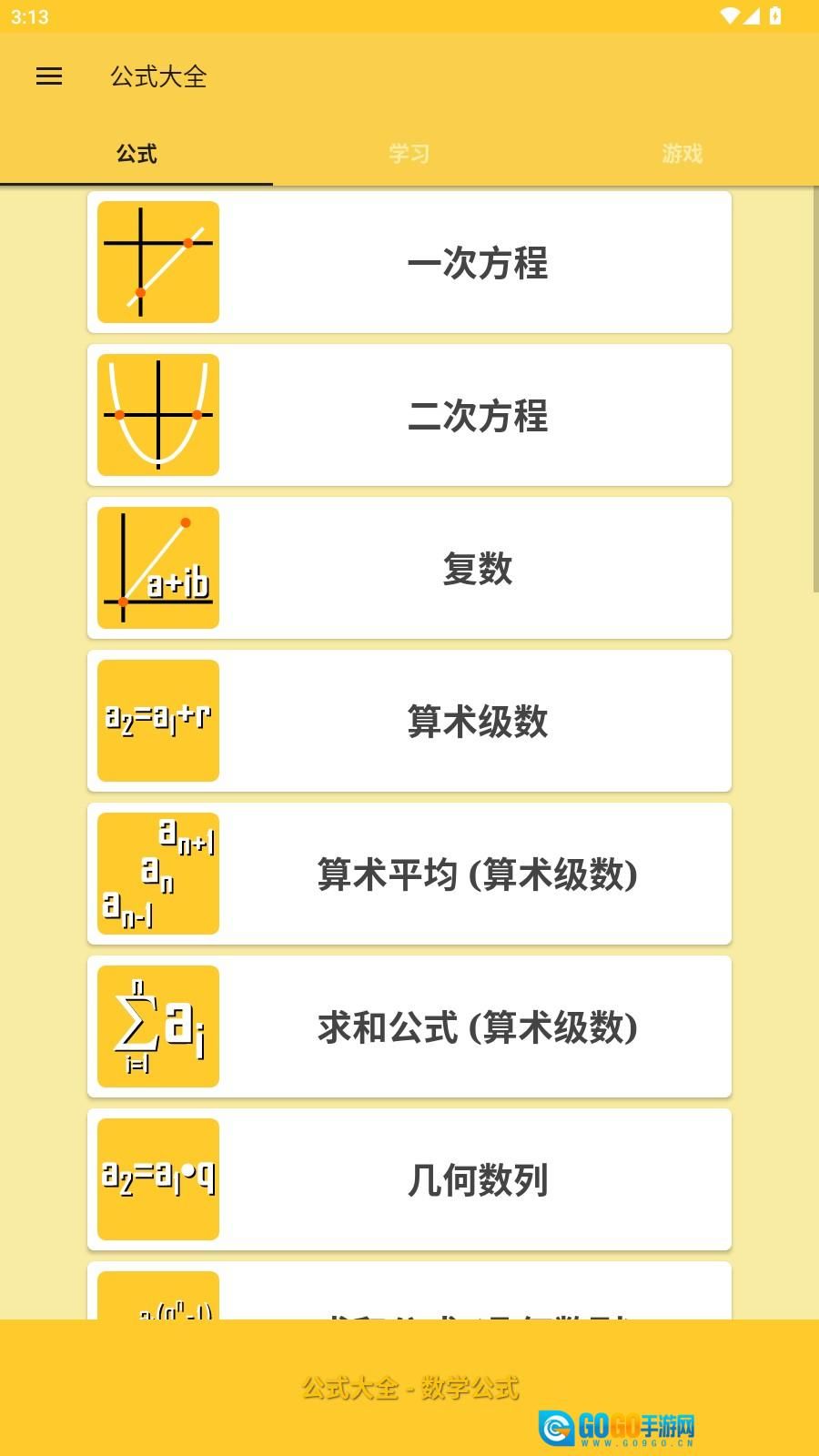 公式大全是一款数学辅助软件。这里面有从小学到大学会用到的所有公式,想算的时候直接输进去,一点就能出答案,特别方便。有不少跟计算相关的小游戏,像练加减法、乘除法的,有算平方根、行列式的,没事玩一玩还能练手。要是觉得游戏难度不合适,或者想多练几道题、调整挑战时间,都能自己设参数,怎么顺手怎么来,不管是平时做题查公式,还是闲下来练计算,都能用得上。