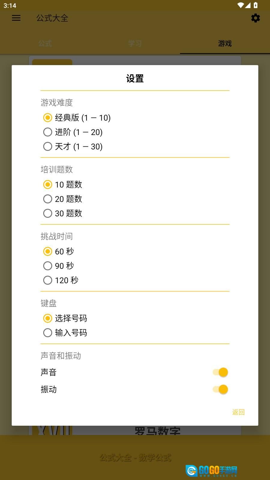 4、游戏模块中点击右上角齿轮设置难度,含培训、挑战、无尽三种模式,锻炼公式计算能力。