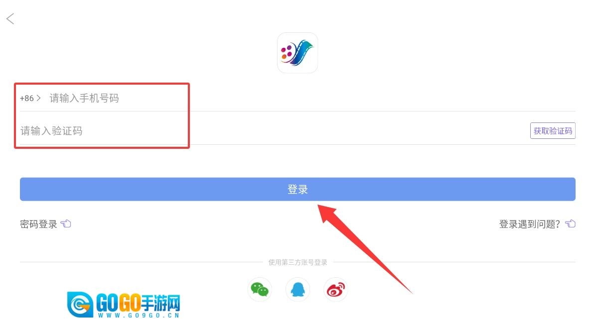 2、进入账号登录窗口,填写手机号获取动态密码登入,或直接选用第三方社交账号快速绑定。
