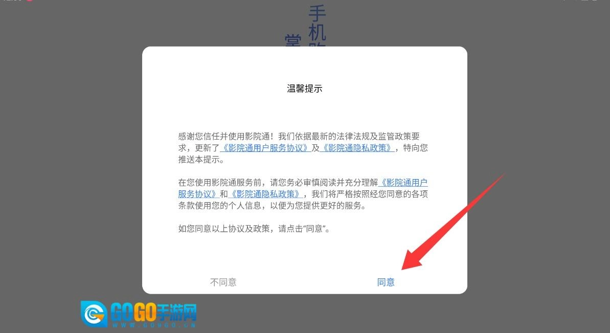 1、启动影院通购票软件,初次运行需勾选服务条款与隐私声明,确认后跳转至首页界面。
