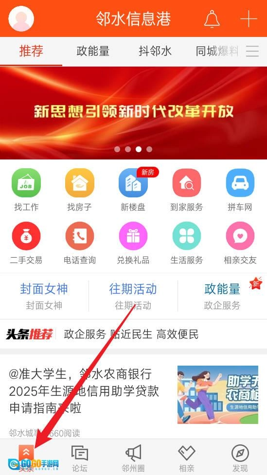 1、点击底部的头条栏目,即可浏览本地最新资讯、政策动态以及重要公告信息。