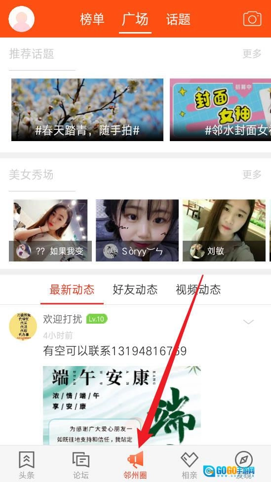 3、进入邻州圈参与广场互动,发布动态、点赞评论,与邻友实时交流。