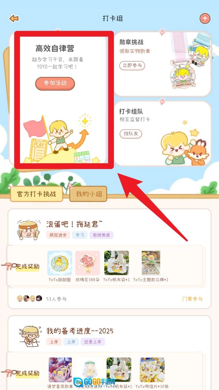 5. 于打卡组内挑选高效自律营活动进行报名,与其他用户共同完成学习打卡任务。