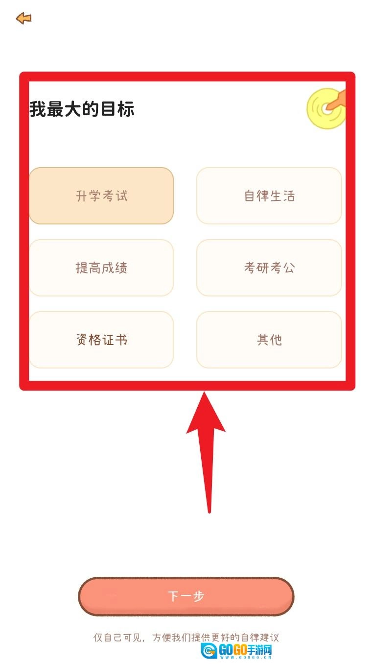 1. 进入App后,首先选择你的核心目标,比如升学考试、自律生活这类方向,以便生成符合你需求的个性化计划。