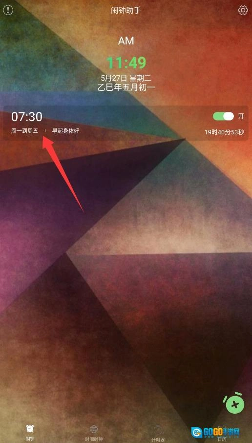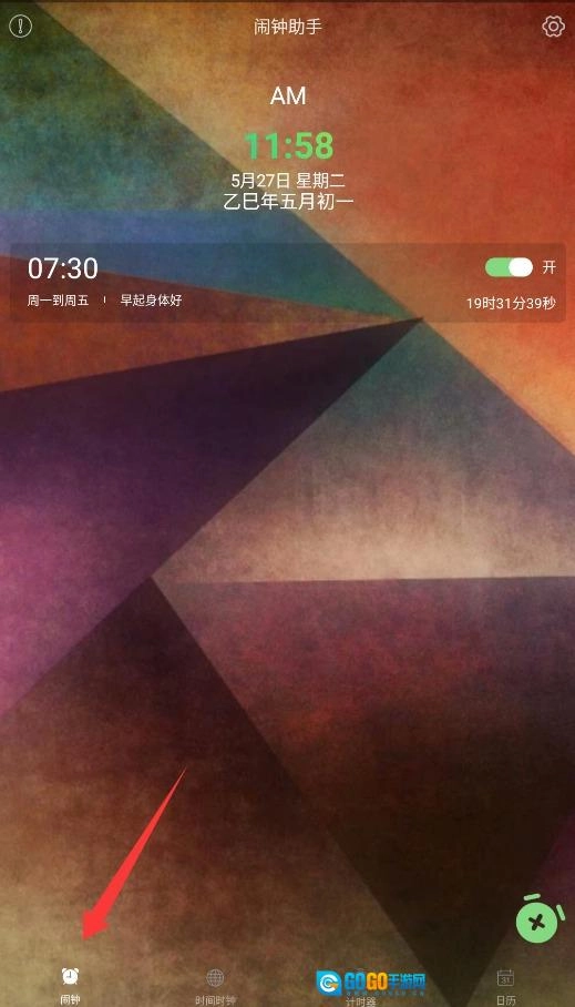1、初次打开后,点击底部导航栏的闹钟选项卡,进入已设置闹钟的管理界面,查看所有闹钟。