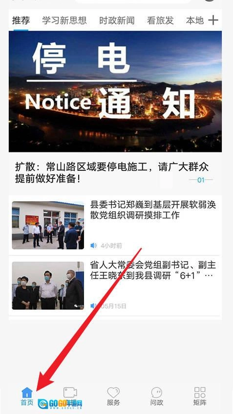 1、首页整合了本地要闻、停电通知与政策发布等内容,便于用户第一时间获取关键信息。