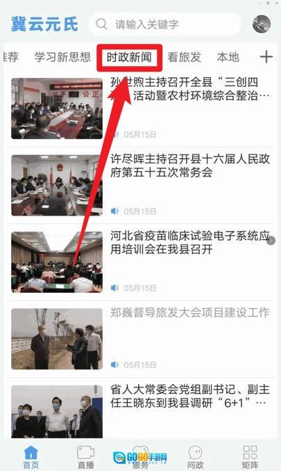2、进入时政新闻栏目,能够浏览政府会议、调研动态等相关新闻报道。