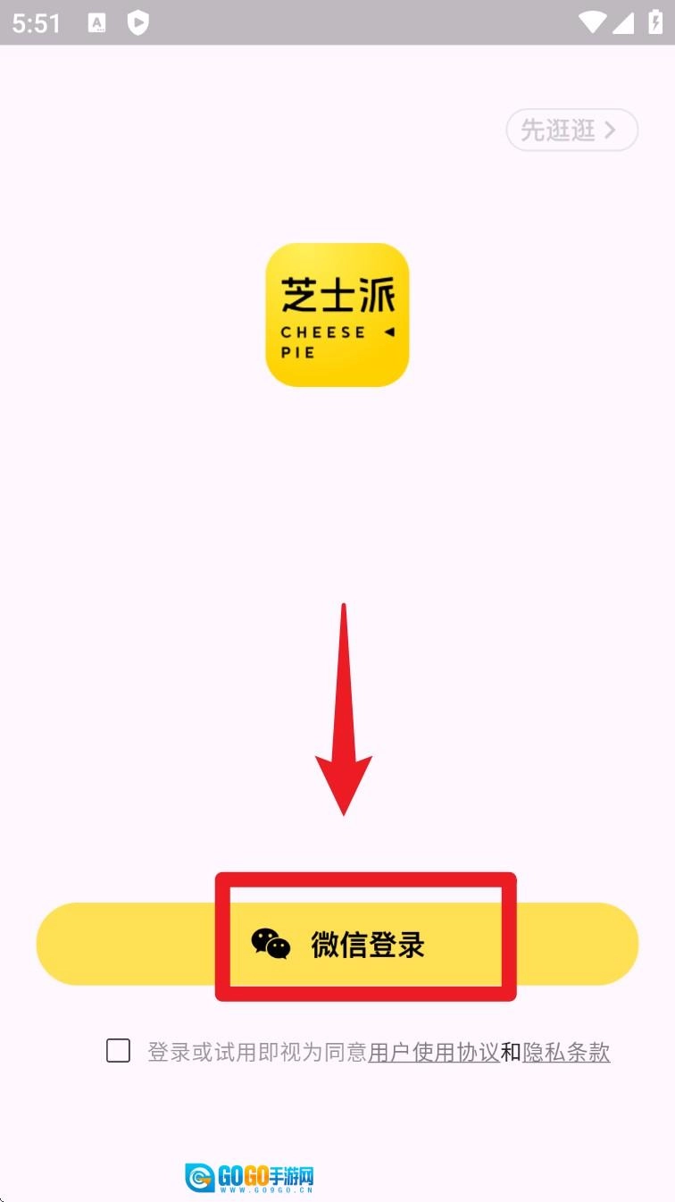 1. 打开App后,可选择点击微信登录完成账号验证,也能点击右上角的“先逛逛”,以游客身份体验功能内容。