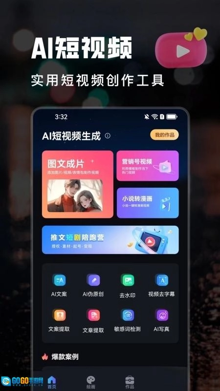 动态图文转化引擎具备以下功能:允许用户上传多张图片,通过AI技术对画面中的各类元素进行自动分析,进而为其添加动态效果、匹配背景音乐并生成字幕,最终制作出契合传播规律的热门视频,能够满足社交媒体发布与广告投放等不同场景的需求。