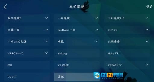 3、挑选VR眼镜:进入“眼镜选择”页面后,软件会展示出市面上大部分主流且兼容的VR眼镜。你得从中选一款自己已有的或者计划使用的VR眼镜,然后把这个设置保存下来。