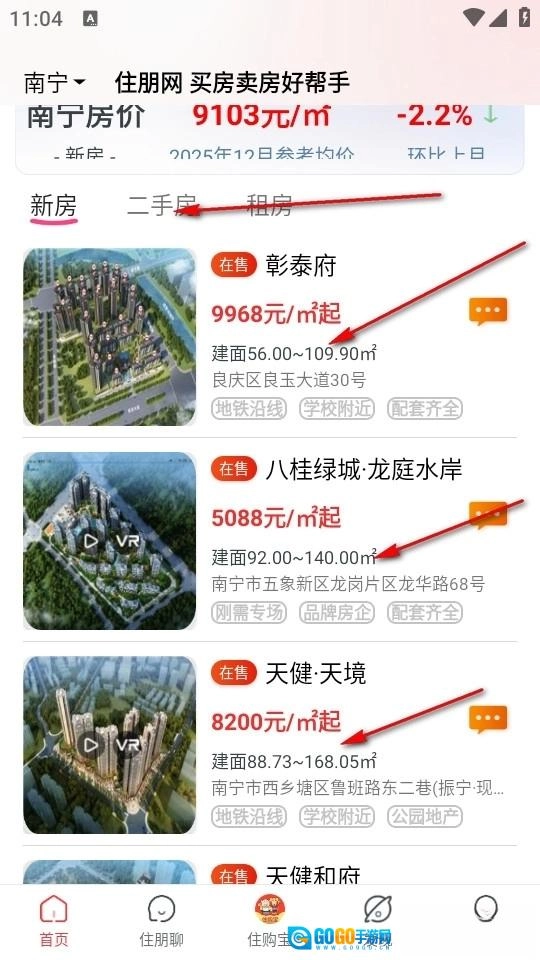 《住朋网》是一款能够查询房价,能够买卖住房和租房的南宁住房一站式服务软件,该软件中收录了许多新楼房、二手房以及租房公寓等房产信息,用户能够根据自己的消费需求选择查看不同的房产,同时这款软件支持用户查询软件中所收录的房子的房价,方便用户能够根据区域性房价合理规划自己的住宅方向。
