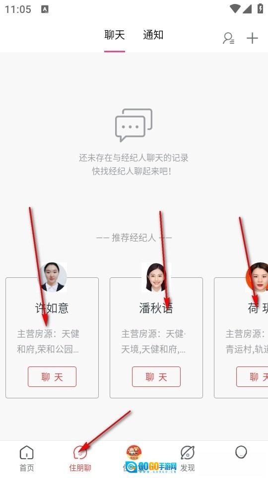 我们能够在住朋聊中找到对应楼盘的房产经纪人,我们能够与他们聊天了解当前楼盘的一手资讯。