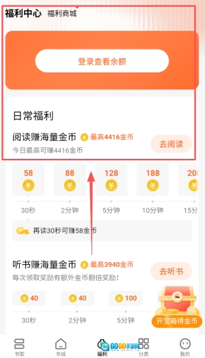 2、独特的任务系统,用户通过完成阅读目标获取金币,兑换现金的同时也促进了阅读的积极性。