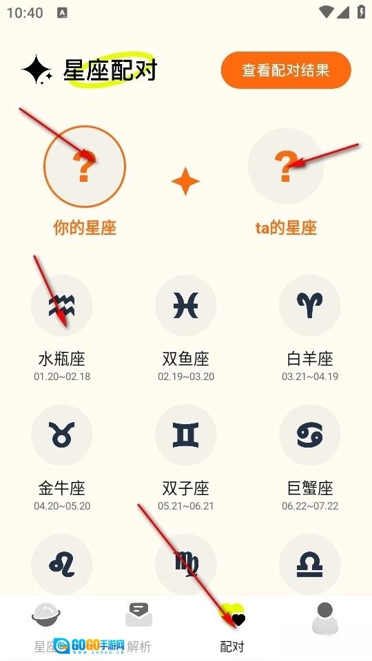 我们还能够在配对中为你的另一半配对,可以将你的朋友的星座以及你的星座放上去配对,即可出现结果。