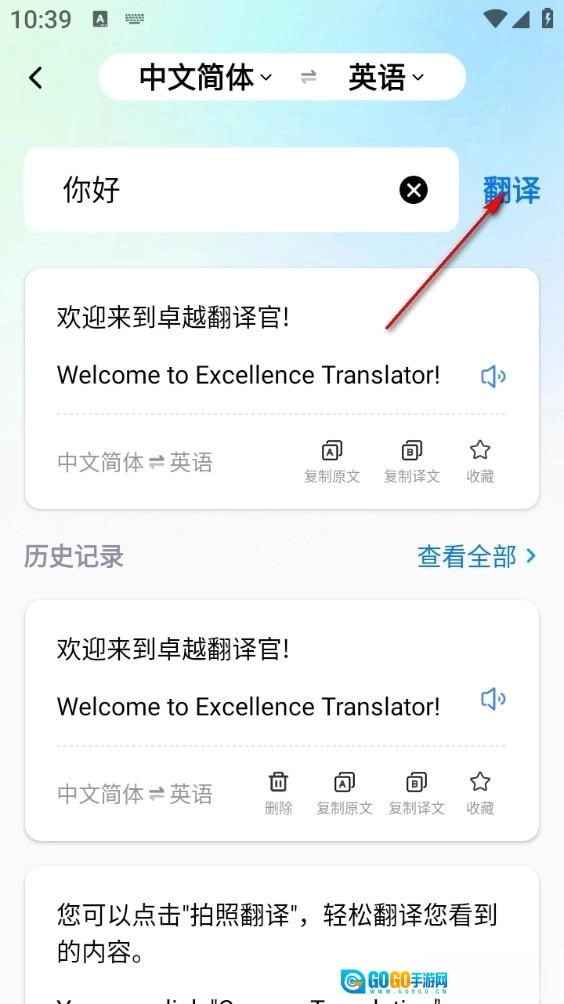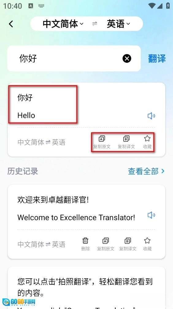 1、翻译完成后,用户可以一键复制译文,方便分享和记录;