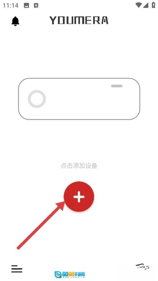 1、主界面设置铃铛图标,中间展示设备轮廓示意图,下方配有“点击添加设备”的提示文字,醒目的加号按钮将引导用户开启设备添加流程。