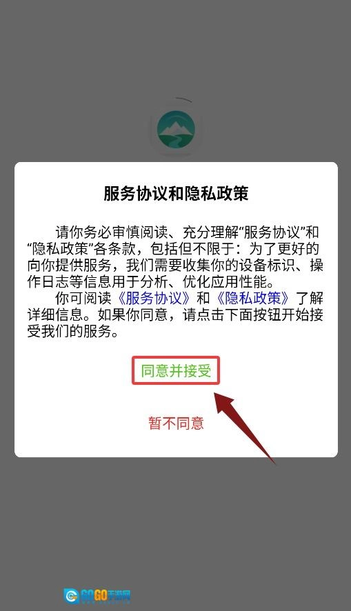 首次启动应用时,需点击同意并接受相关协议,确认无误后才能使用应用。