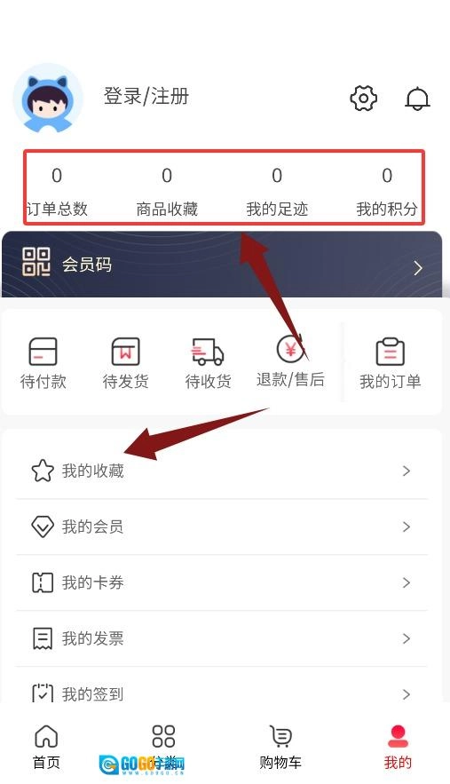 4、在个人中心里,用户可以查看订单总数、商品收藏、我的足迹以及积分明细这些内容。