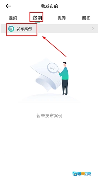 3、进入【我发布的】页面后,依次点击【案例】选项与【发布案例】按钮。