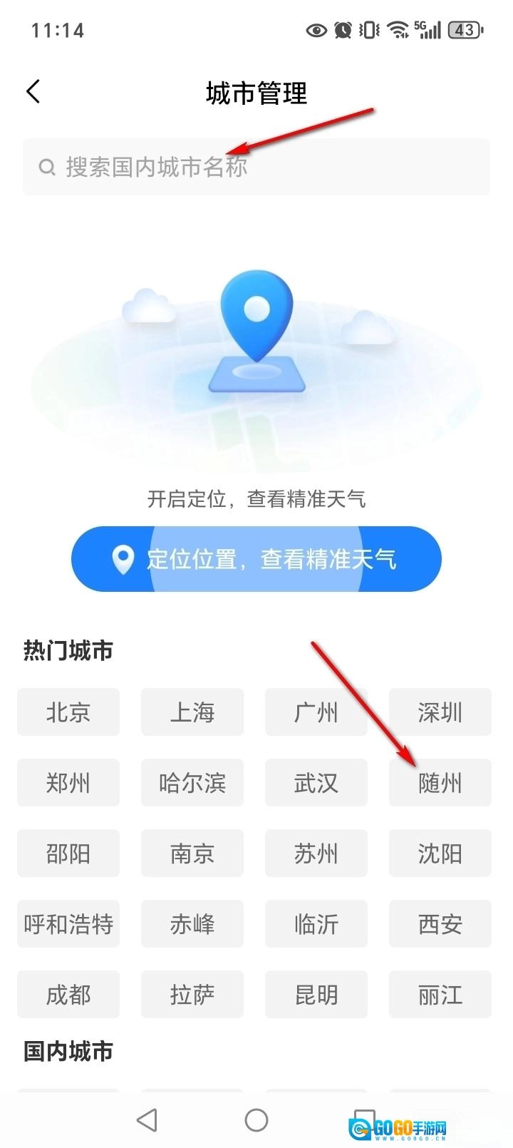 搜索或者直接选择城市
