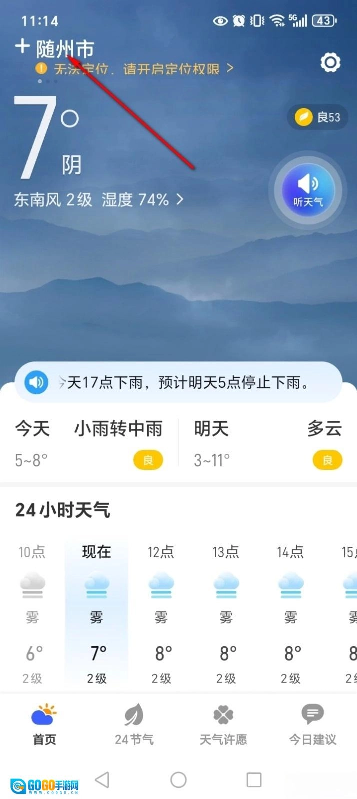 卫星5G天气报怎么添加城市