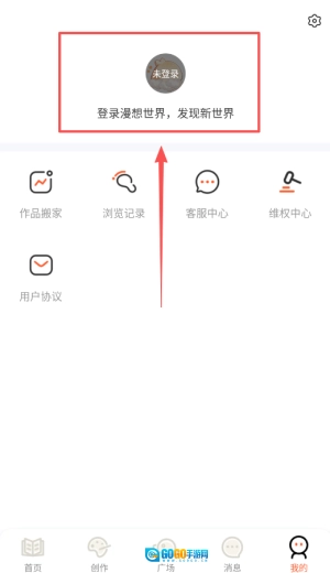 1、安装漫想世界App并完成注册,界面简约明了,使新用户能够快速熟悉各项功能,轻松找到所需工具进入创作状态。