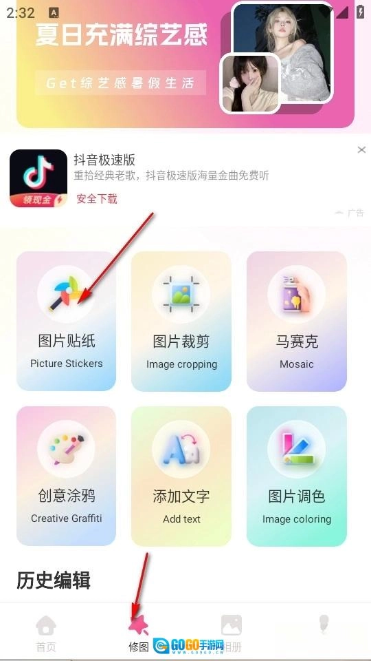 我们也能够点击下方的修图,选择将自己拍摄过的图片进行美化。