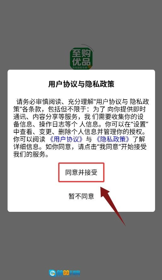 首次打开应用时,需要点击同意并接受相关协议,确认协议内容后才能进入主界面。