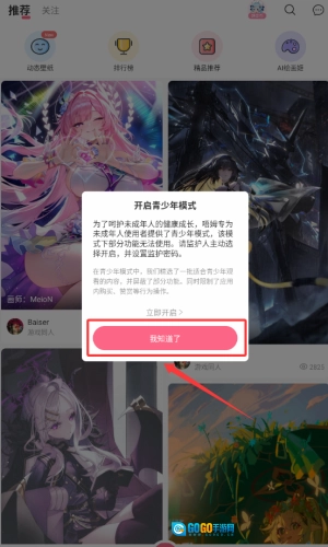 2、在弹窗点击我知道了,关闭青少年模式提示。