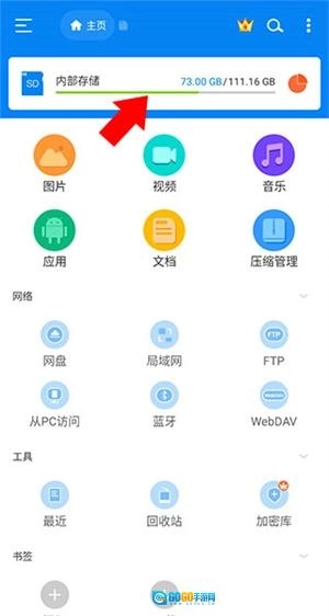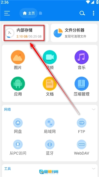 4.返回到主页点击内部存储。