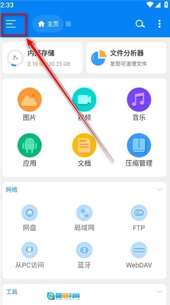1.打开RS文件管理器,点击左上角的菜单。
