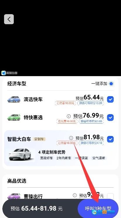 系统会自动展示预估费用和可选车型,你选好合适的车辆类型后,只需等待司机接单就行。