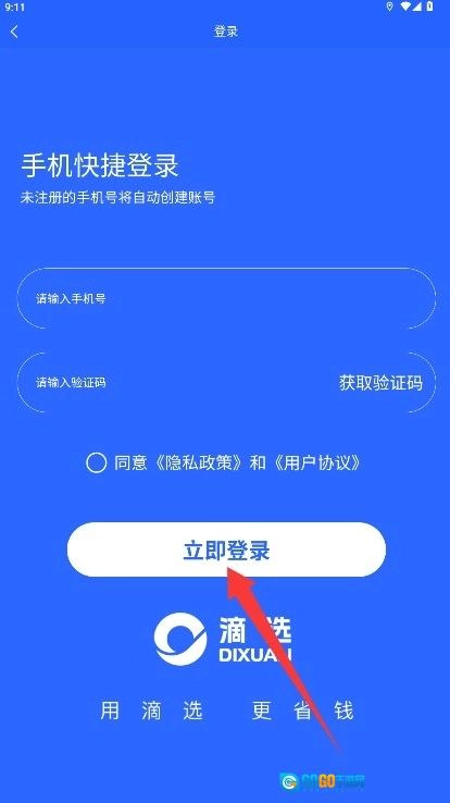 在登录页面填写手机号与短信验证码,勾选同意相关条款后,点击立即登录按钮即可进入。