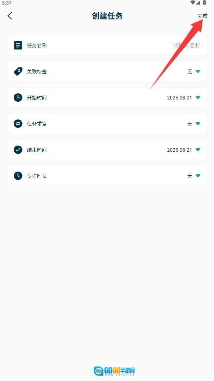 填写任务名称信息,选择对应的分类标签,设定好任务的开始与结束时间,之后点击完成按钮来保存任务信息。
