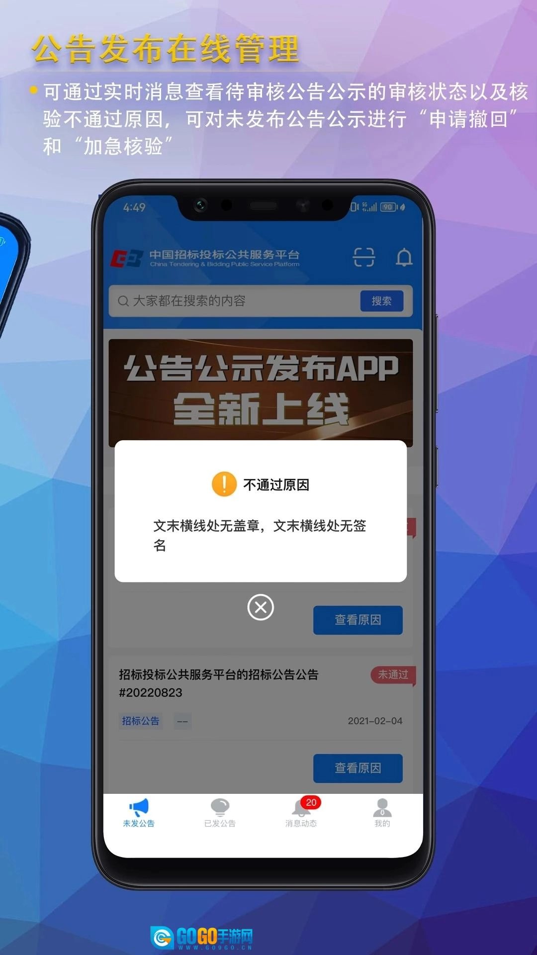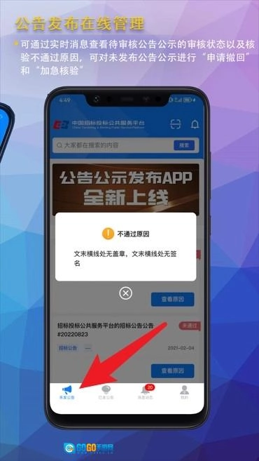 2、对公告状态进行实时跟踪,自动提示审核进度,使用户能够随时知晓最新情况。
