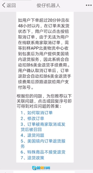 若用户下单后超过20分钟但未超过48小时,且订单处于未发货状态,可点击对应按钮申请取消(特殊商家、不退不换/无法取消的商品除外)。因无法在线联系商家直接取消,需待别样物流中心收到包裹后提供美国境内退货服务,故系统将自动扣除6美金退货手续费,同时用户需自行承担已实际产生的境内运费、商家手续费等相关费用。用户确认取消后,退款会在扣除上述费用后原路退回至支付账号。