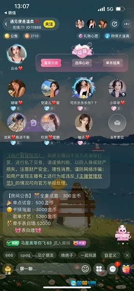 2、挑选你想加入的语音房间进入,在里面能够自由地聊天和结交朋友。
